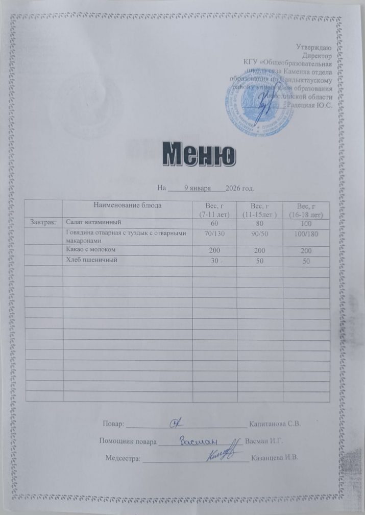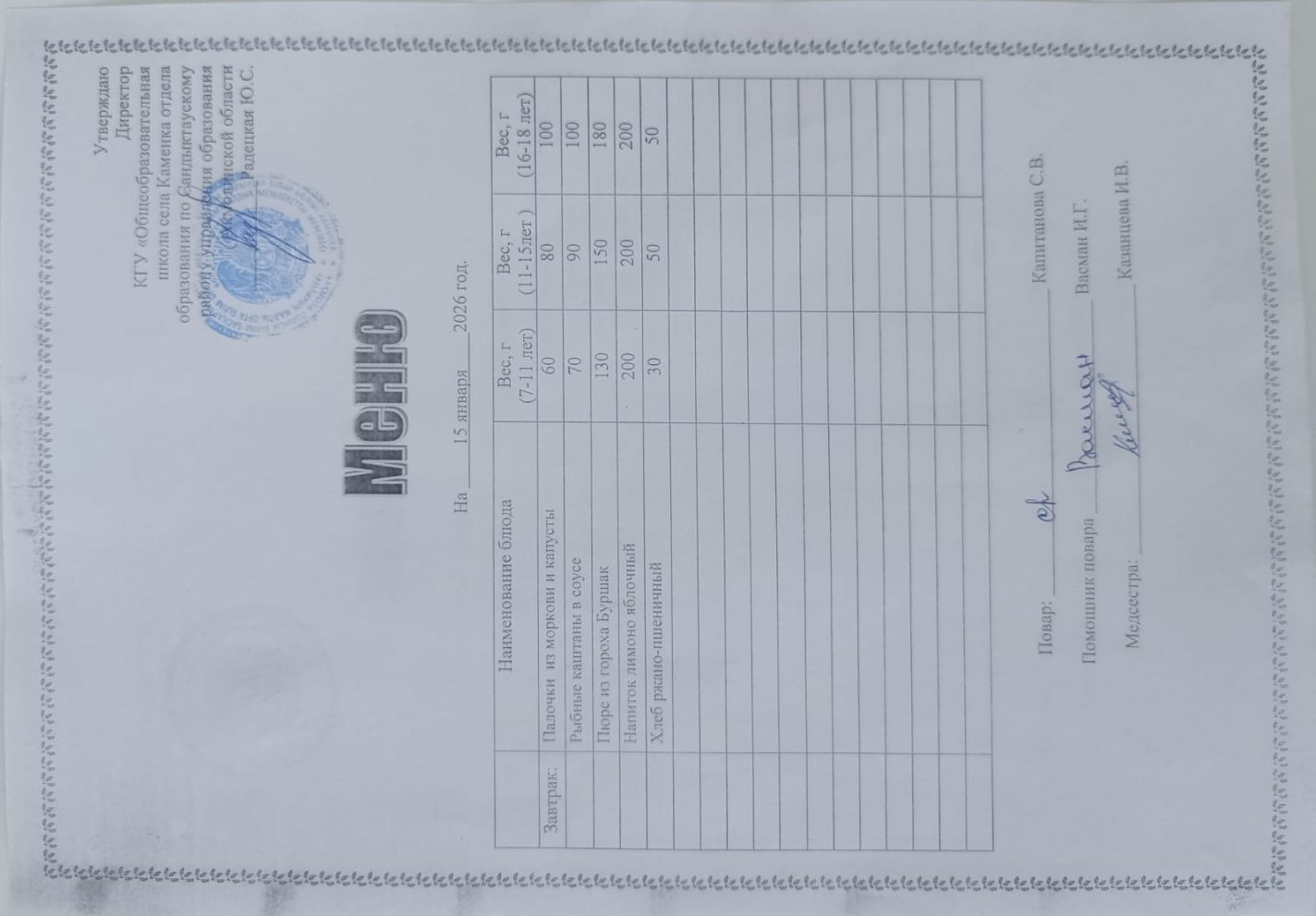 «Ақмола облысы білім басқармасының Сандықтау ауданы бойынша білім бөлімі Каменка ауылының жалпы орта білім беретін мектебі» коммуналдық мемлекеттік мекемесіне