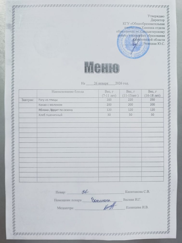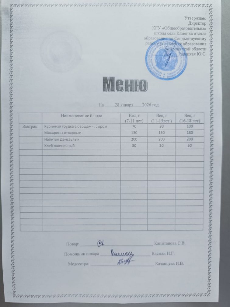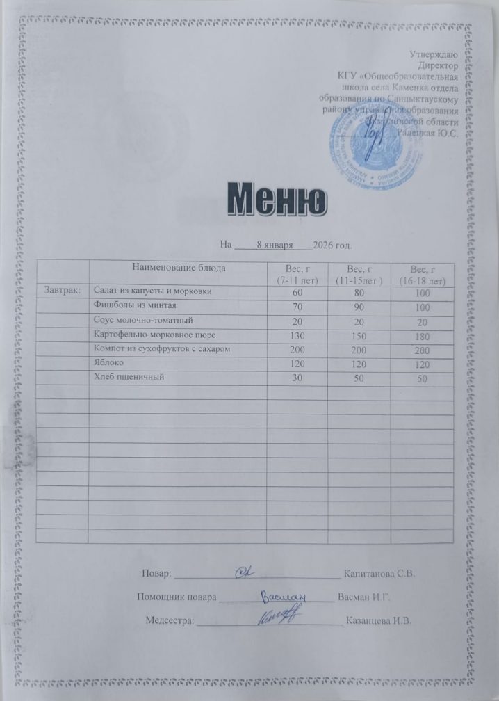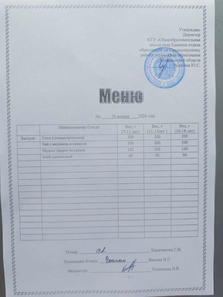Коммунальное государственное учреждение «Общеобразовательная школа села Каменка отдела образования по Сандыктаускому району управления образования Акмолинской области»