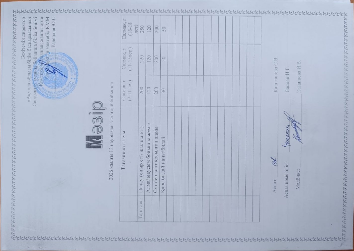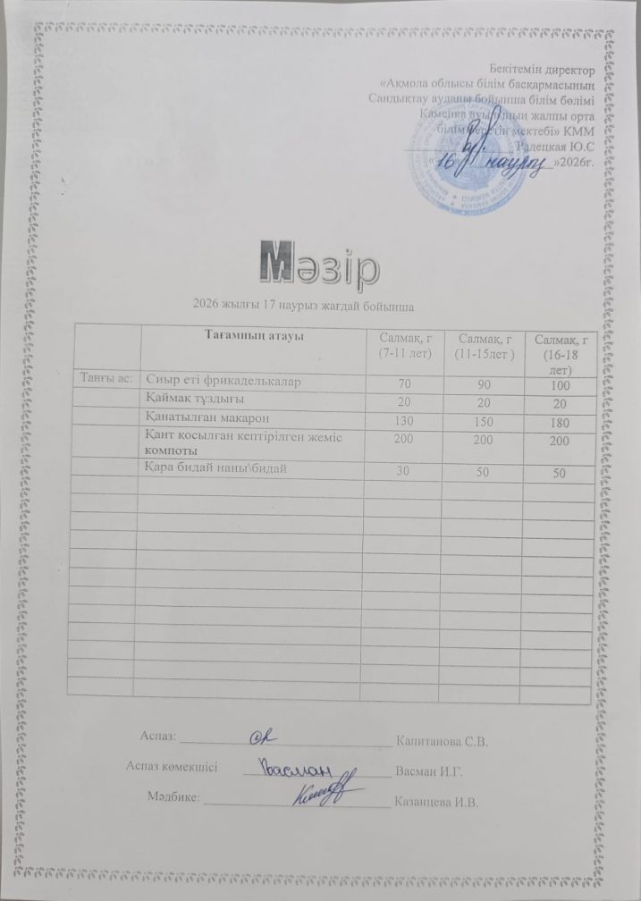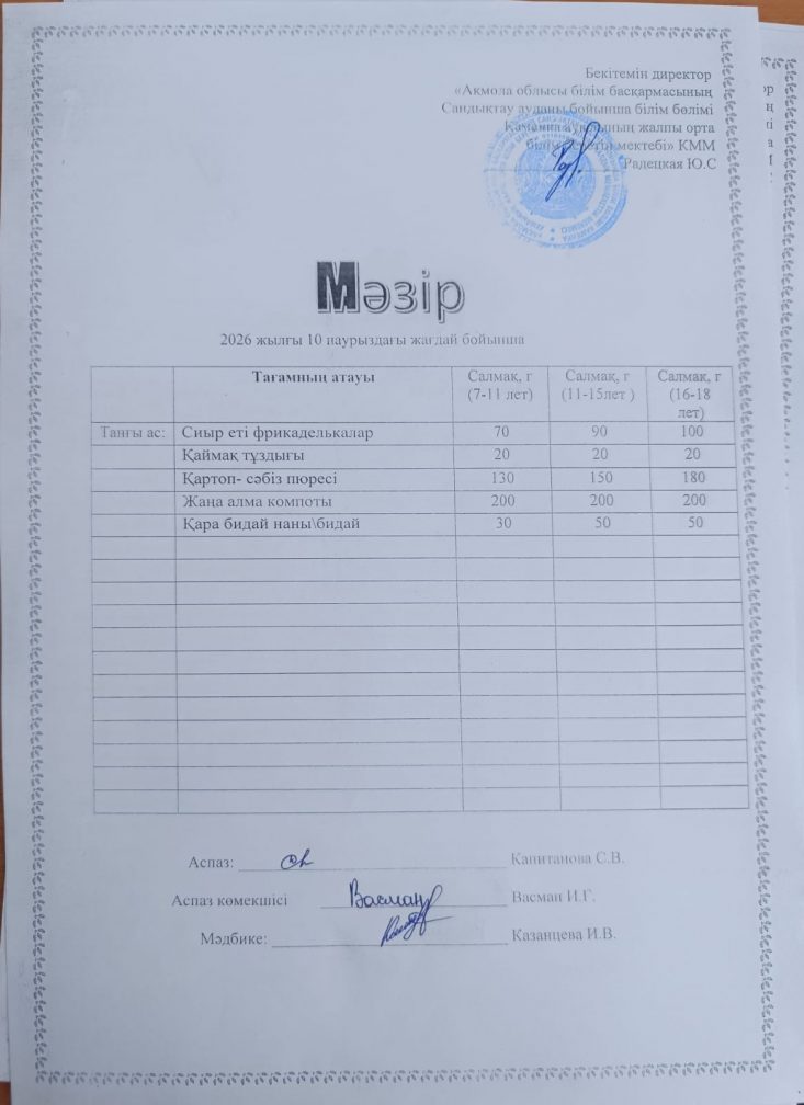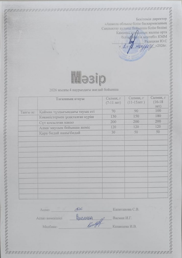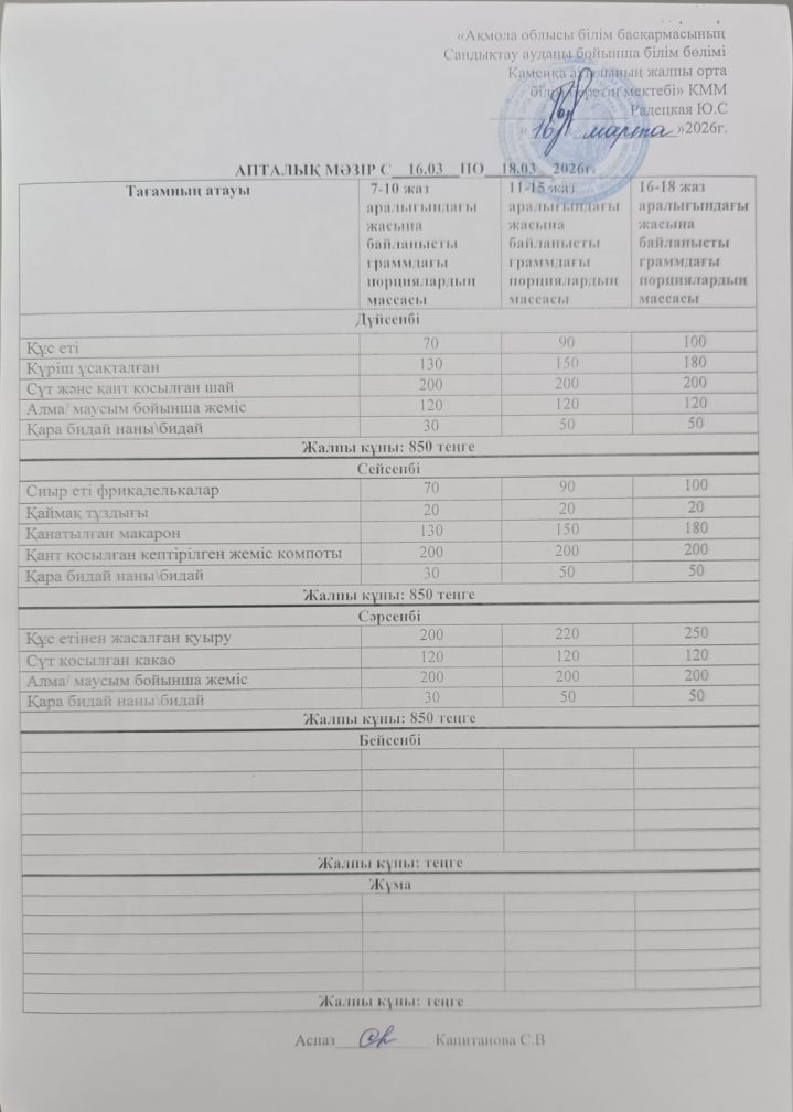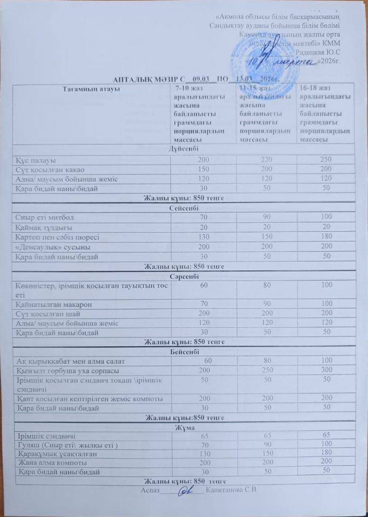 Апталық мәзір 2025-2026 оқу жылы