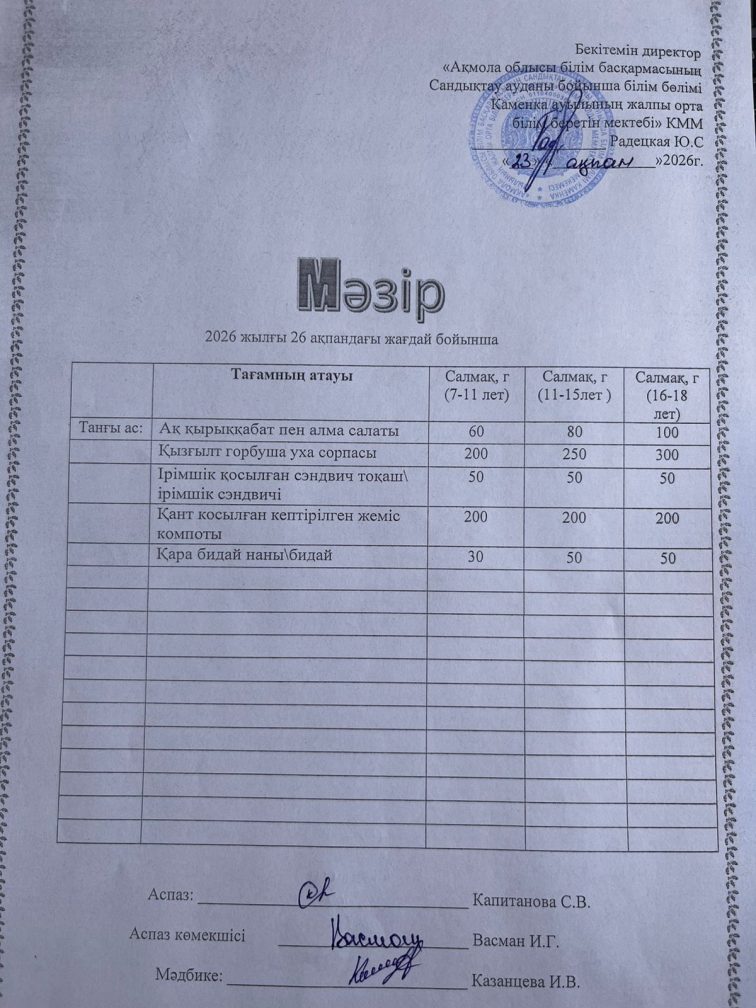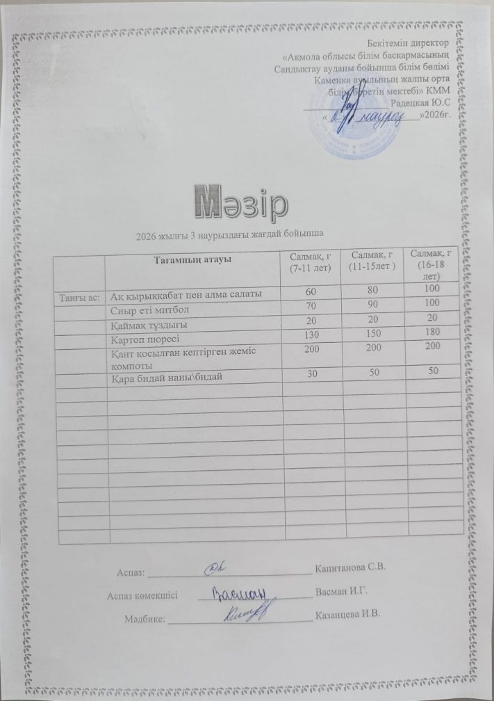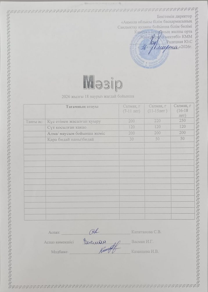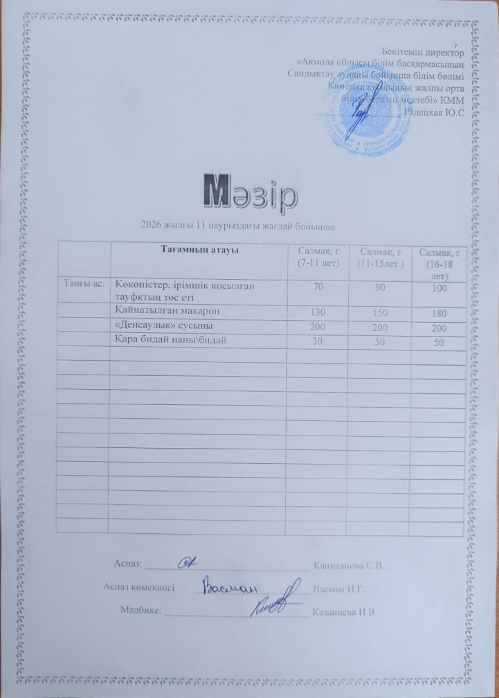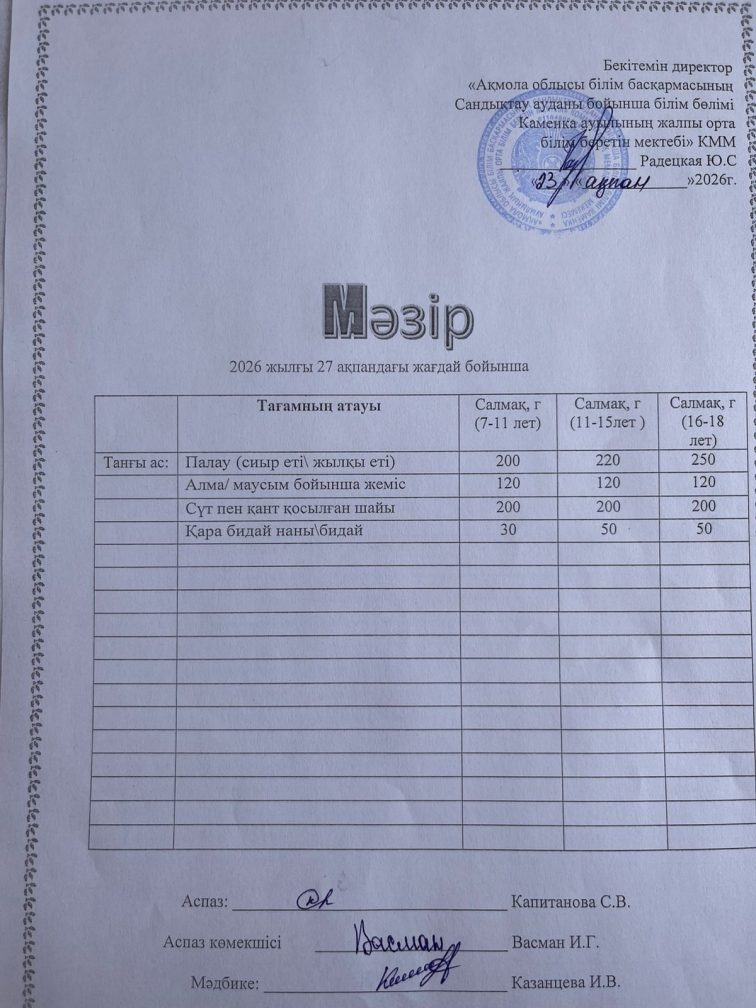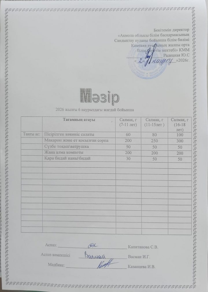 Апталық мәзір 2025-2026 оқу жылы