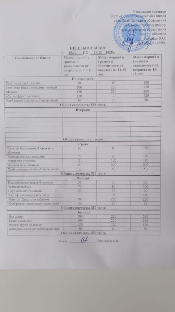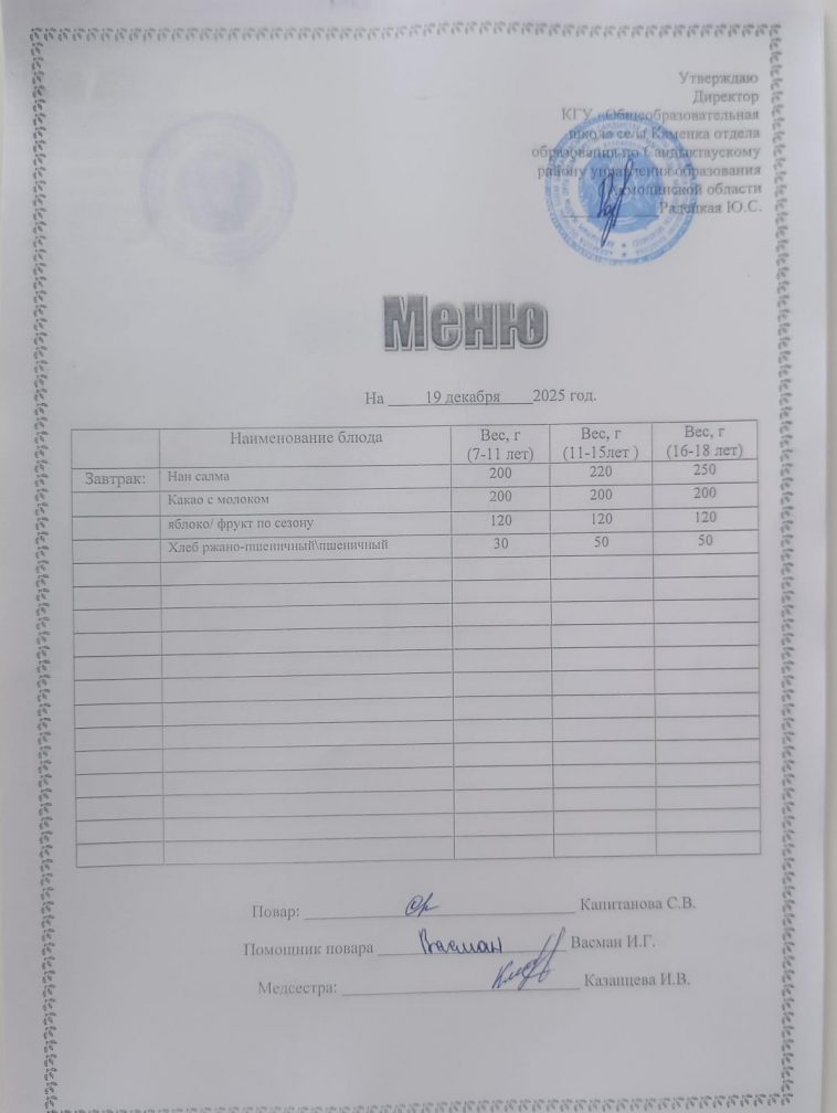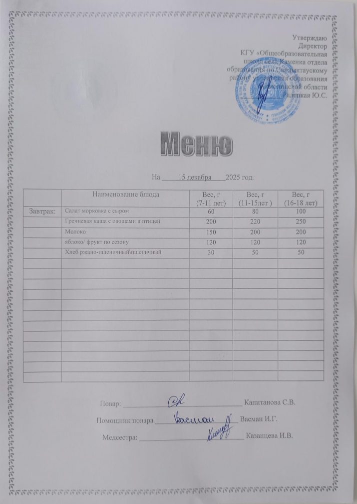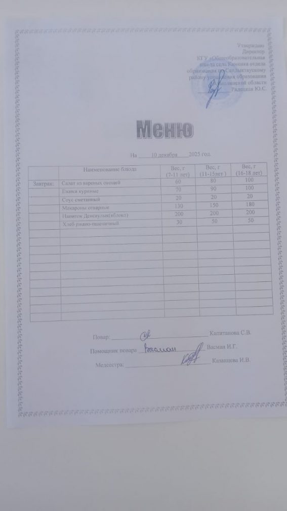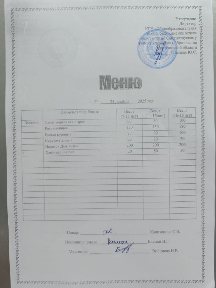 «Ақмола облысы білім басқармасының Сандықтау ауданы бойынша білім бөлімі Каменка ауылының жалпы орта білім беретін мектебі» коммуналдық мемлекеттік мекемесіне