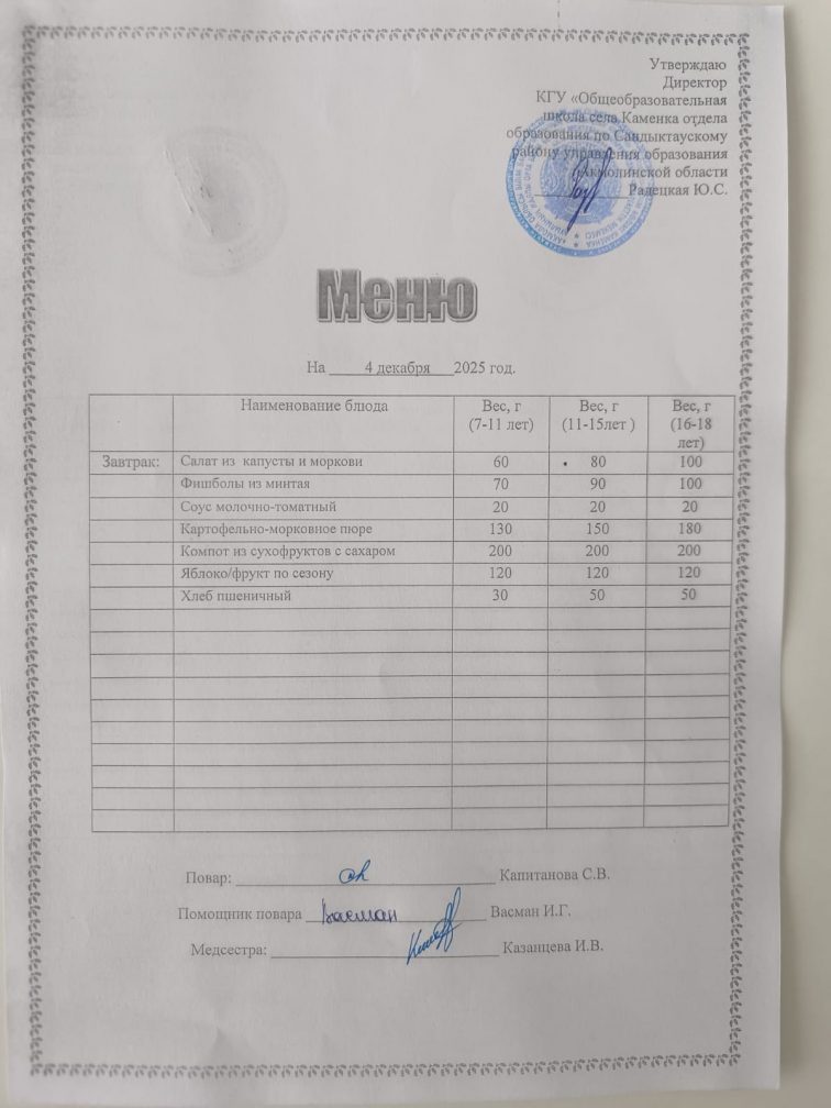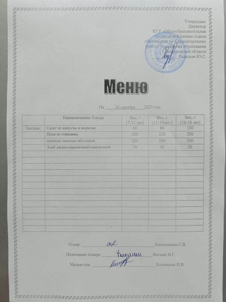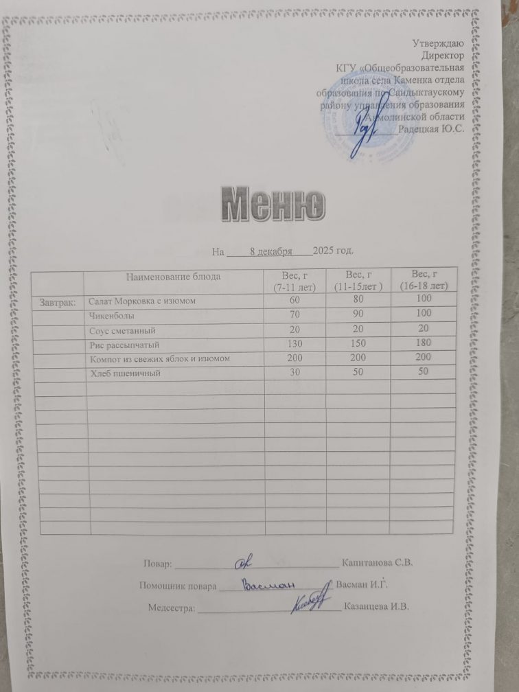 Коммунальное государственное учреждение «Общеобразовательная школа села Каменка отдела образования по Сандыктаускому району управления образования Акмолинской области»