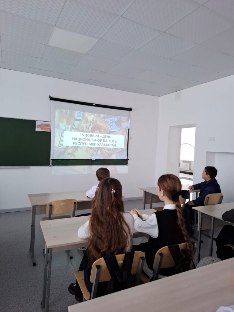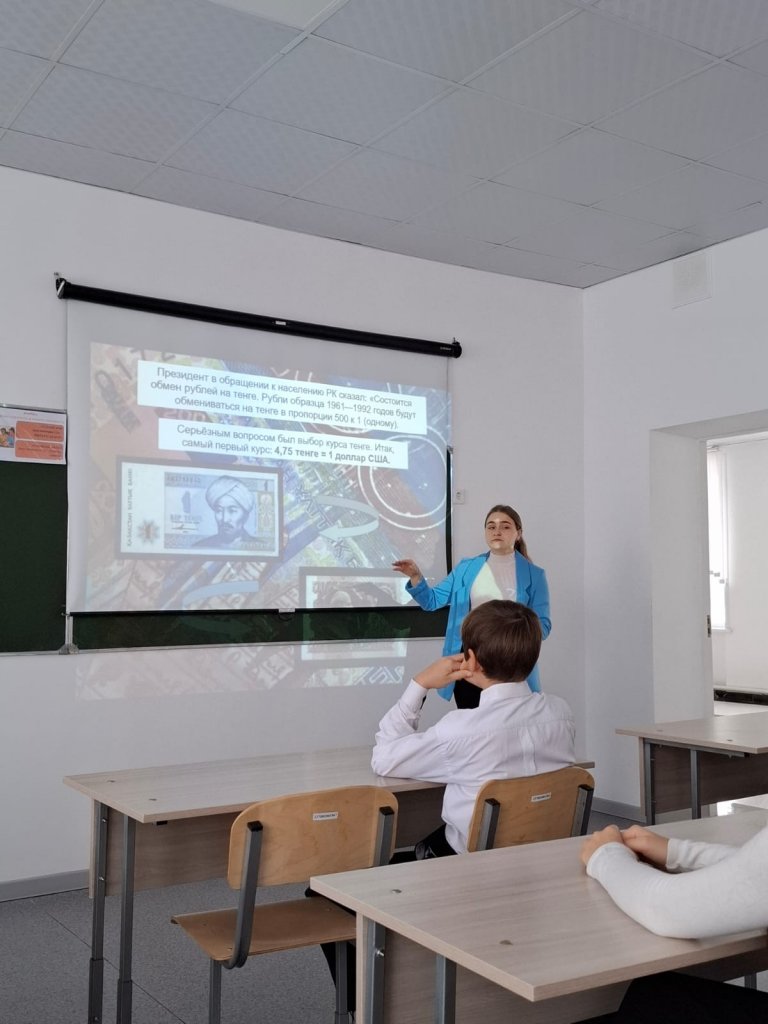 7 сыныпта Қазақстан Республикасының Ұлттық валюта — Теңге күніне арналған сынып сағаты өтті. Балалар қазақстандық ақшаның пайда болу тарихы, оның ел экономикасы үшін маңызы, сондай-ақ алғашқы банкноттар мен тиындардың дизайны қалай жасалғаны туралы білді.