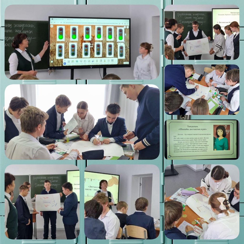 2025 ж 20 қазан қазақ тілі мен әдебиеті пәндерінің Онкүндігі аясында жасанды интеллекті қолдану арқылы 8-сыныпта "Достықты сақтау -киелі іс" тақырыбында ашық сабақ өтті. Балалар сабақ барысында Padlet»,"Mentimeter" платформасы арқылы берілген тапсырмаларды қызығушылықпен орындады. Kahoot викторинасы , Canva арқылы қысқа электронды хаттар жазды. Топтық, жұптық, шығармашылық тапсырмаларды орындау кезінде білімдерін жақсы деңгейде көрсетті.