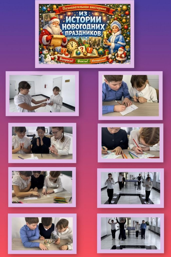 30 желтоқсан күні іс-шаралар жоспарына сәйкес 6-сыныпта «Жаңа жыл мерекелерінің тарихынан» тақырыбында танымдық викторина өтті. Іс-шара барысында оқушылар достықты, өзара көмекті және командалық өзара әрекеттестікті дамытуға бағытталған ойындық және шығармашылық тапсырмаларды орындады.