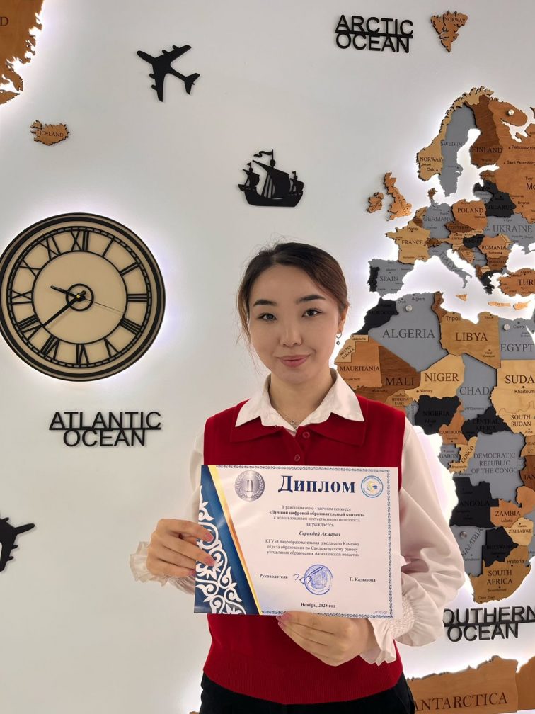 Мектебіміздің орыс тілі мен әдебиеті пәні мұғалімі Ақмарал Серікбаевна «Жасанды интеллектті қолдана отырып үздік цифрлық оқу контенті» атты очно-заочный байқауға қатысып, өзінің шығармашылық және заманауи педагогикалық материалын ұсынды.