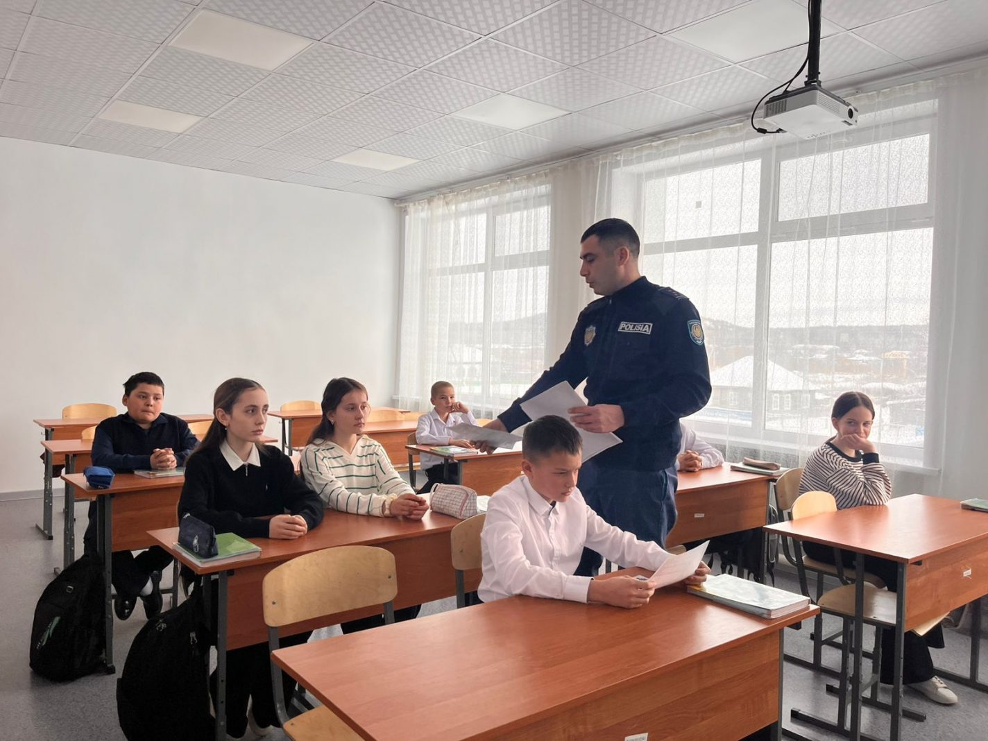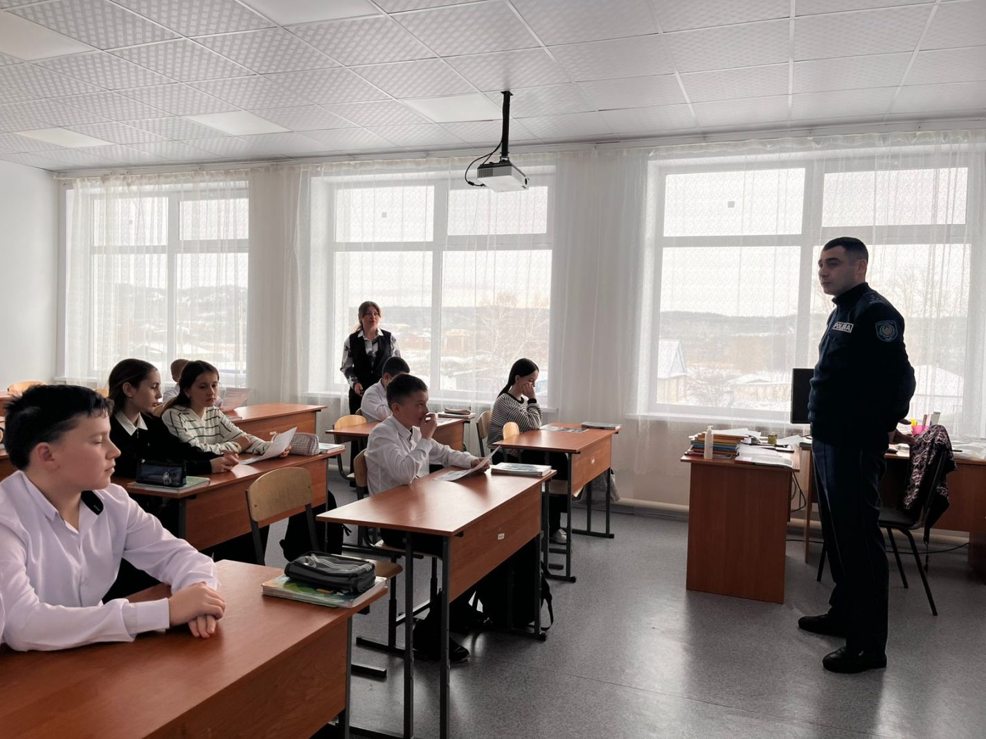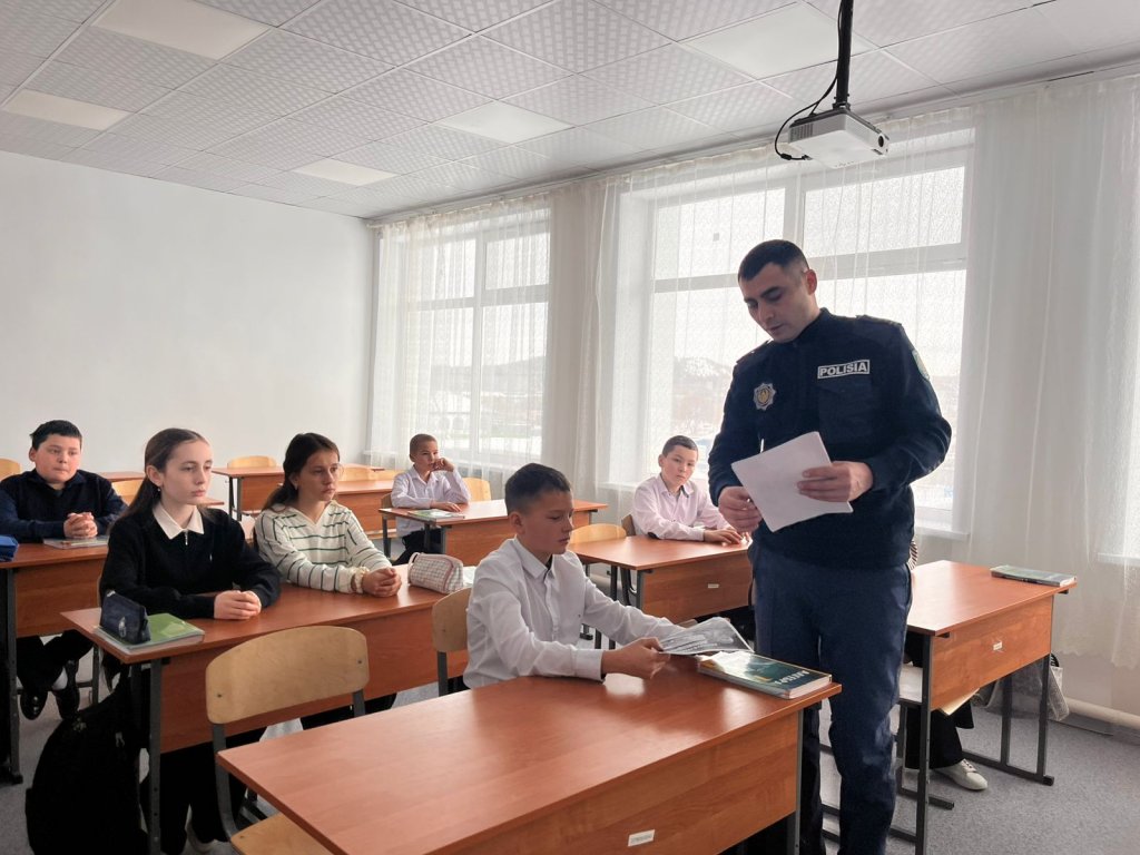 «Заң және тәртіп» айлығы аясында оқушылармен өткізілген ақпараттық-профилактикалық әңгіме