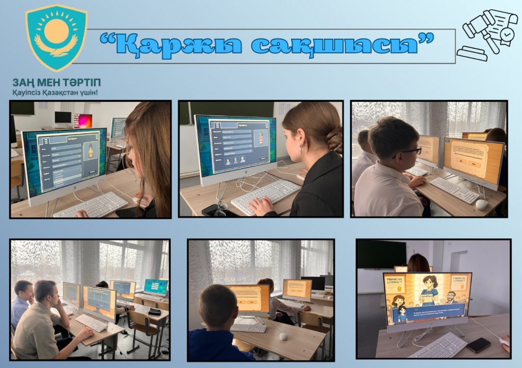 Біздің мектептің 10 және 11 сынып оқушылары қаржы құралдарымен сауатты билік ету дағдыларын қалыптастыруға және қаржылық қауіпсіздік деңгейін арттыруға бағытталған "Қоржы Сақшысы" қаржылық сауаттылық бойынша интерактивті ойынға қатысты.